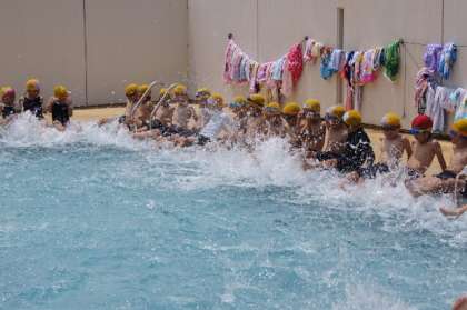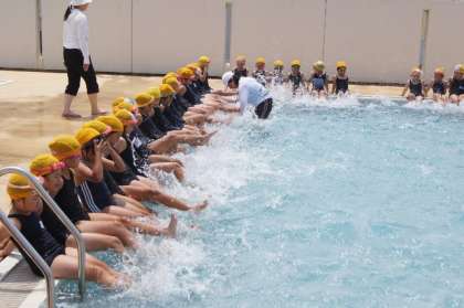 いよいよ今日から水泳学習のスタートです。今日は,2年生がプールに入りました。少し水は冷たかったようですが,水しぶきがあがるたびに,子どもたちは大きな歓声をあげていました。子どもたち一人一人に,今年の目標をもたせ,水泳学習に取り組ませていきたいと思います。
