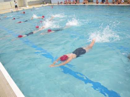 しっかりシャワーを浴び,水に慣れてからけのびやバタ足を行いました。4年生は10mを目標に泳ぎますが,泳ぎの上手な子が多く驚きました。最後の自由時間は,子ども達も気持ちよさそうに泳いでいました。