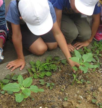 自分たちが育てているホウセンカとは違った形の葉が出ていることなどに気付いたようです。