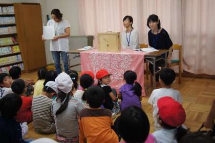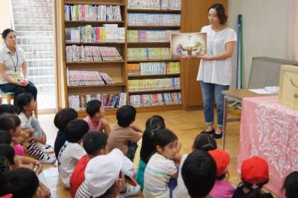 今年度最初のPTAとまと隊による読み聞かせです。昼休みに図書室で実施しました。紙芝居や本の読み聞かせに,子どもたちは真剣な表情で見たり聞いたりしていました。今後も月に1度実施します。「次も楽しみです。」と子どもたちは話していました。