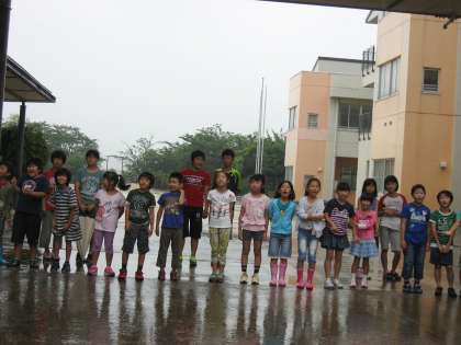 3年 あいさつ運動(心みがき) 公開日 2015/07/03 更新日 2015/07/03 3年生 「おはようございます」元気いっぱいの声が学校中に響いています。 今日は3年生が「あいさつ運動」の担当です。 朝から雨が降っていましたが、気にする様子も見せずにこにこ笑顔であいさつをしていました。 元気いっぱいにあいさつができるのは3年生のいいところです。