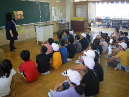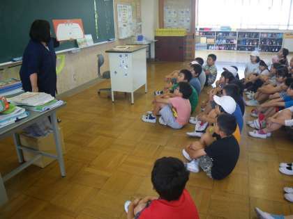 10日に第2回の読み聞かせが行われました。1組は櫻井先生が環境問題にまつわるお話ということで,「もったいないばあさん」「その手に1本の苗木を」「わたしが ぼくがちきゅうのためにできる10のこと」「ひまわり」などを読んでいただきました。子どもたちも声を合わせて読み,とても楽しそうでした。2組は林先生が「まだまだつづきがあるのです」「1つぶのおこめ さんすうのむかしばなし」を読んでいただきました。決まり文句の「まだまだつづきがあるのです」をみんなで一緒に読んで,結末のおもしろさを楽しんでいました。