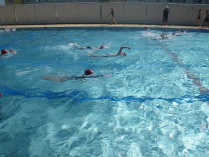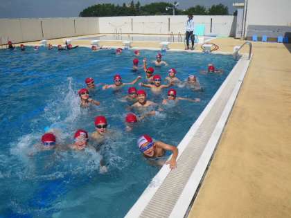 ずーと天気に恵まれず,4年生はプールに入ることができませんでしたが,やっと夏らしい天気になり,まぶしい太陽の下でプールを楽しむことができました。昨日は上手な子が苦手な子にコツを教え,10m以上泳げるようになった子が結構いました。今日はレベル別に分かれ,どんどん泳いで技能向上をめざしました。木曜日の天気が心配なため,最後に簡単な着衣泳を行いました。
