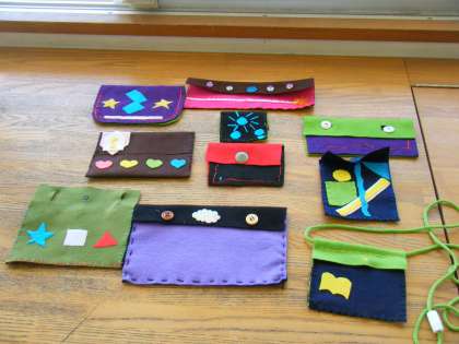 作品が完成しました。(知性みがき) 公開日 2015/07/15 更新日 2015/07/15 5年生 先月から計画を立てて製作してきたフェルトを使った小物が完成しました。みな,模様を貼り付けたり,名前やイニシャルを縫い取りしたりと様々な工夫が見られました。持ち帰りますので,ぜひ活用してください。