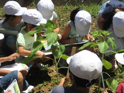 花が咲くのはいつ頃になるのだろうと楽しみにしている子どもたちです。