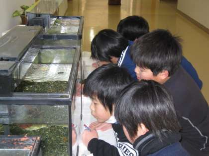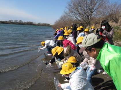 サケの放流をしました。 公開日 2012/02/03 更新日 2012/02/03 子どもたちの活動 2月2日(木) 毎年,取手大利根ライオンズクラブの方から,サケのたまごをいただき,学校の水槽で孵化させ,稚魚を川に放流する活動をしています。 今年は4年生が12月からサケを育て,放流をしました。 「大きくなって帰ってきてね。」と川に放してあげました。