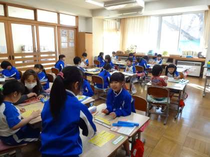 ブロックを使ったり,友達と問題を出しあったりしながら,楽しく定着を図っています。