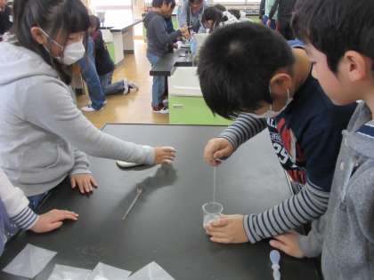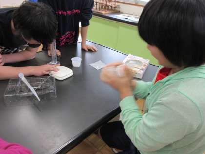 食塩が水に溶けるとどうなるのか、限りなく溶けるのかなど実験をして確かめました。