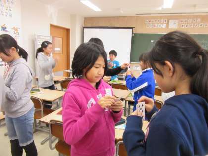 カードを3枚持って友達とじゃんけんしカードを交換します。