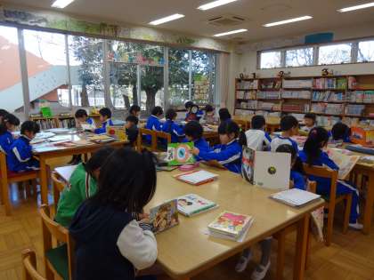 図書室の使い方もだいぶ身につき,静かに席に座って本を読む姿が見られるようになってきました。