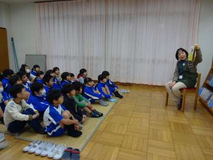 最後には学校司書の先生から本の読み聞かせをしていただいています。