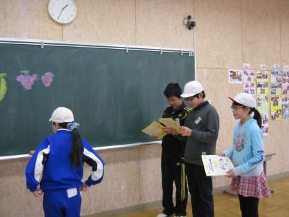 プレゼントカードをもらった6年生はとてもうれしそうに、班のメンバーからのメッセージを読んでいました。