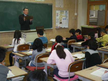 今日は学習ボランティアの先生をお招きし,そろばんの学習を行いました。始めにそろばんの歴史を教えていただき,実際に昔のそろばんを見せていただきました。また,そろばんの使い方を教わり,実際に計算も行いました。初めてそろばんを手にする児童も多く,楽しいそうに行っているのが印象的でした。最後に大きな数の歌を教えていただき,子どもたちはいつまでもうれしそうに口ずさんでいました。