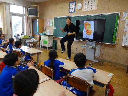 1年 英語学習 (知性みがき) 公開日 2017/02/28 更新日 2017/02/28 1年生 月1回の英語学習も,もうすぐおしまいです。 今月は,いろいろな食べ物の名前を教えてもらいました。 プリンやケーキは,英語だとちょっぴり言い方が違うんだなあ…! 最後にはカードゲームをして楽しみました。