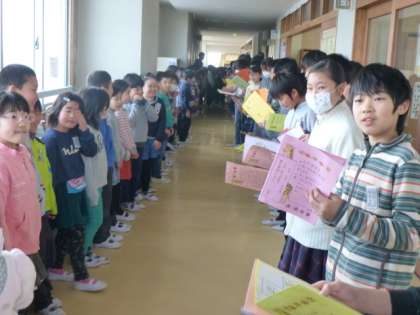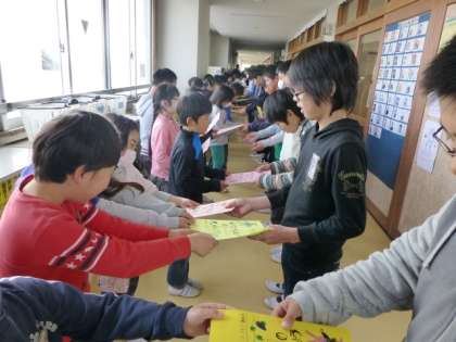 心を込めてつくった招待状を6年生へ手渡ししました。