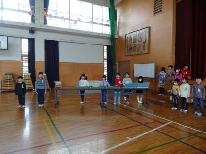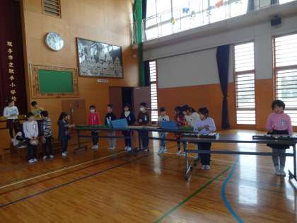 今日は,初めて体育館で「ありがとうの会」の発表練習を行いました。