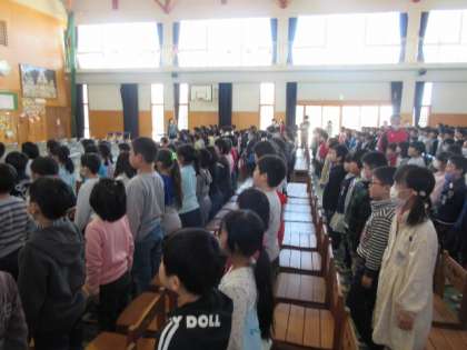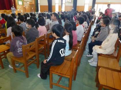 最初は戸惑う様子でしたが,最後は声をそろえて呼びかけることができました。