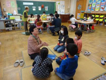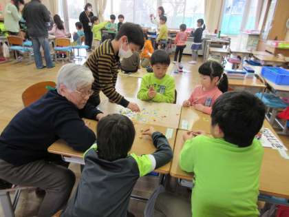 小堀の「ときめき学級」の方々を「昔遊び名人」としてお招きし,あやとりやおはじき,お手玉,けん玉などを教えていただきました。