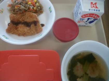 <献立>赤飯 牛乳 とんかつ