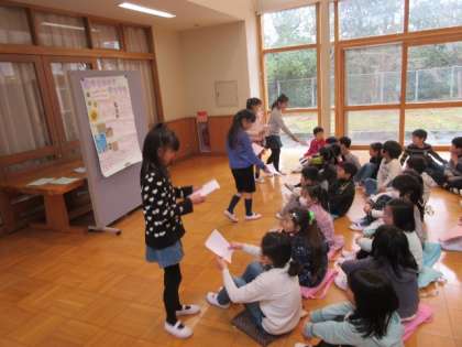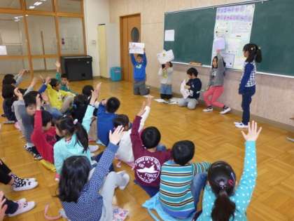 掲示資料を読むだけではなく,パンフレットを配付したり,クイズ形式で発表をしたりと,2年生のために工夫して準備してくれたことが伝わりました。