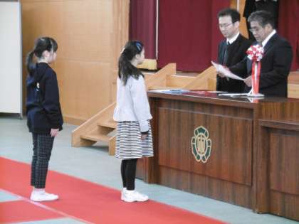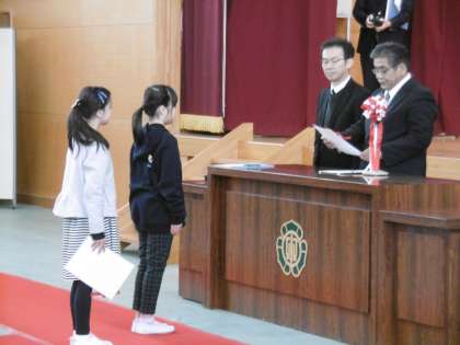 修了式 公開日 2017/03/24 更新日 2017/03/24 4年生 四年生としての学校生活も最後を迎えました。修了証を受け取り,いよいよ二週間後には新しい生活が始まります。子どもたちが皆,立派な五年生となることを願っています。 一年間ありがとうございました。