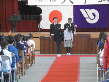 各学年の代表児童に修了証が授与された後、