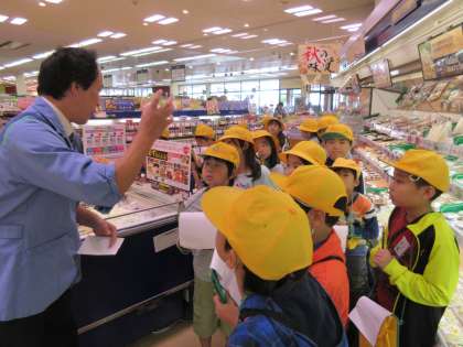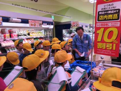 今日は,社会科見学でカスミへ行きました。2学期に入ってから,社会科の授業でスーパーマーケットについて考えたり,見学の為の質問を考えたりするなど,準備をすすめてきました。いよいよ見学ができるということもあり,子どもたちは朝からわくわくしていました。