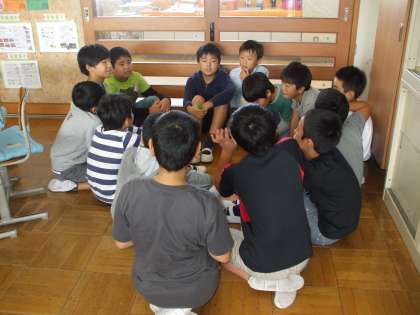 宿泊学習に向けて,実行委員を中心に活動が始まりました。今日は学年全体で宿泊学習のスローガンを確認したり,部屋や活動班のメンバーを決めたりしました。子どもたちは真剣に,そして楽しそうに話し合いに参加していました。