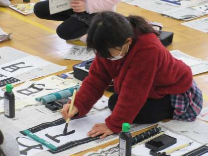 書き初め大会 公開日 2019/01/17 更新日 2019/01/17 3年生 今日は3年生の書き初め大会がありました。 習字の授業が始まってから約10ヶ月が経ちます。大分使い方にも慣れ,上手な字が書けるようになってきました。 「お正月」の文字をていねいに書き,今年を始めることができました。