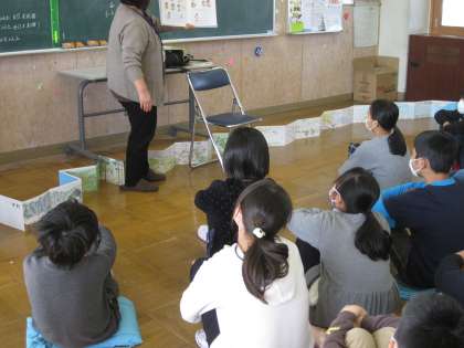 読み聞かせ 公開日 2019/01/24 更新日 2019/01/24 6年生 お昼に高学年対象の読み聞かせがありました。 6年1組では,かこさとしさんの作品「かわ」「みずとはなんじゃ?」を紹介されました。「かわ」は絵がつながっていて4.5メートルもある長い絵本のため,先生の足下に置いてお話をしてくださいました。予想外の絵本の登場に子どもたちは圧倒されたようでした。