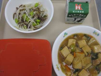 <献立名>ごはん 牛乳 生揚げの中華煮