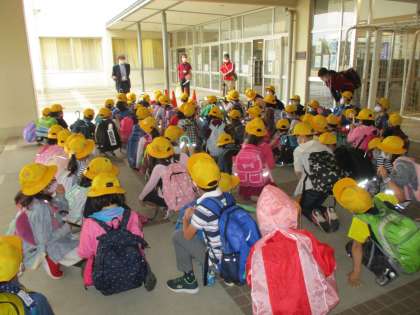 校外学習の出発式の様子です。てるてるぼうずを校長先生が各教室に作ってくれました。お天気はどうなるでしょう。子供たちもちょっぴり心配そうでした。