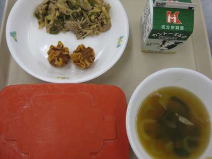 <献立名>ごはん 牛乳 揚げしゅうまい