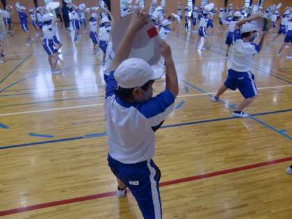 4時間目は花笠踊りの練習をしました。手の動きや足の動きに気をつけながら踊れる子供たちが増えてきています。