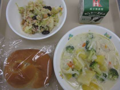 <献立名>米パン 牛乳 さつまいものクリームシチュー