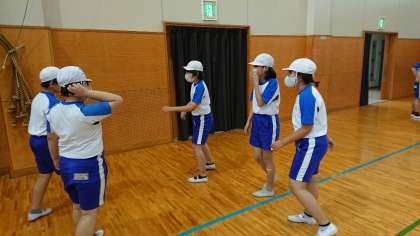 今日の体育の時間には,ソーラン節を踊りました。6年生が5年生に教えていました。