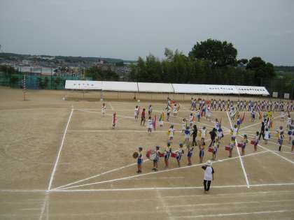いよいよ最後の練習です。衣装を着けて本番さながらに行いました。今日は,難しい風車や交差が揃ってきました。運動会本番には,すばらしい鼓笛隊を見ていただけるようにとみんな頑張っています。