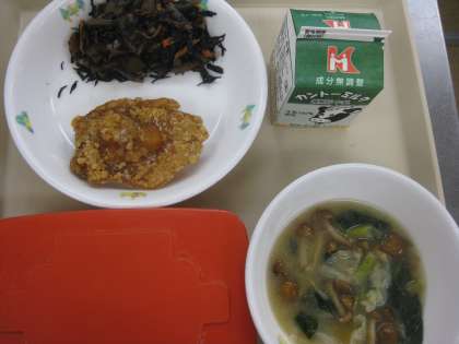 <献立名>ごはん 牛乳 鶏のから揚げ
