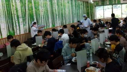 今日のお昼は,三密を避けるために,2カ所に分かれていただきます。