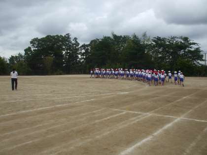 明日の運動会に備えて、花笠音頭の最終確認をしました。退場の仕方を変更し、本部前から左右に分かれて応援席のほうへ退場することになりました。子どもたちも最後の練習なので、気合が入りました。明日が楽しみです。