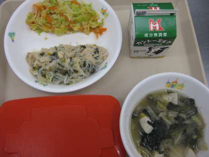 <献立名>ごはん 牛乳 鶏肉の塩麹炒め