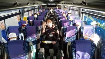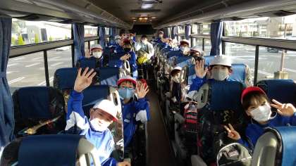 3年生バスに乗り込み笑顔いっぱい 公開日 2020/10/20 更新日 2020/10/20 3年生 3年生も,コロナウィルス感染症への対応としてバス3台に分乗します。 バスの子供たちは笑顔いっぱいです 「いってきま〜す!!」 3年生も,ミスターマックスさんのご厚意で駐車場をお借りしました 安心して出発できました。