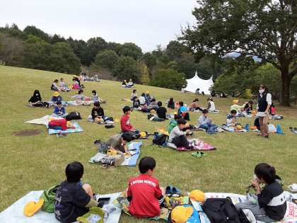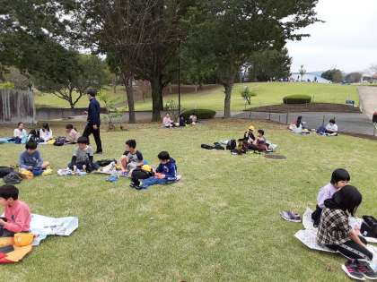 こんなきれいで広い芝生で食べられて,子供たちも本当に楽しそうです。