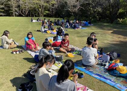 オリエンテーリングを終え,お弁当タイムです。 ご飯を美味しそうにもりもりと食べていました。