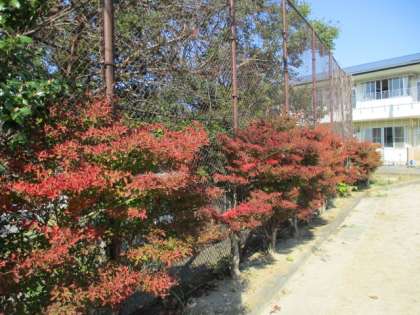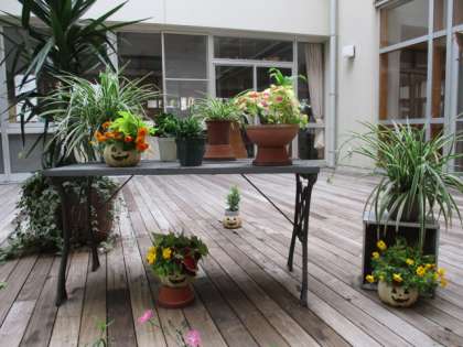 校庭のドウダンツツジもしっかり色づき,中庭にはハロウィーンの植木鉢が並んでいました