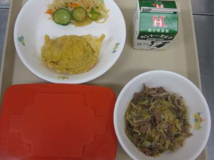 今日の肉豆腐には,「茨城県産の常陸牛」を使用しました。柔らかくてとてもおいし く,好評でした。