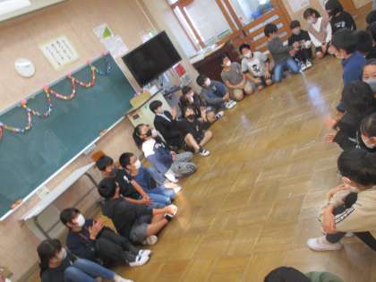 教育実習生が勉強しに来てくれています。自己紹介や友達紹介、ゲームを交え、歓迎会を行いました。