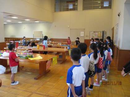 1年生が来てくれて,わくわくの2年生。みんなで作ったおもちゃで,楽しんでもらえるとうれしいです。