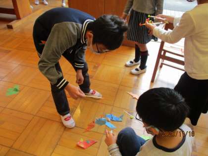 おもちゃまつり1日目〜最後は自分たちで〜 公開日 2020/11/18 更新日 2020/11/18 2年生 1年生との交流の後,自分たちで作ったおもちゃで遊びました。お店を出す人,お客さんの二手に分かれて,それぞれの楽しさを味わいました。今日は,とても忙しい一日になりました。明日は,2組のおもちゃまつり。がんばってください。