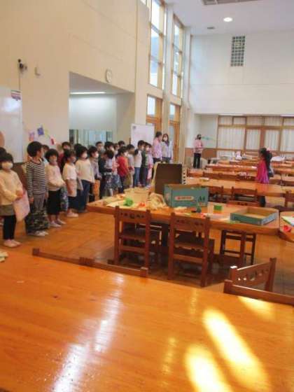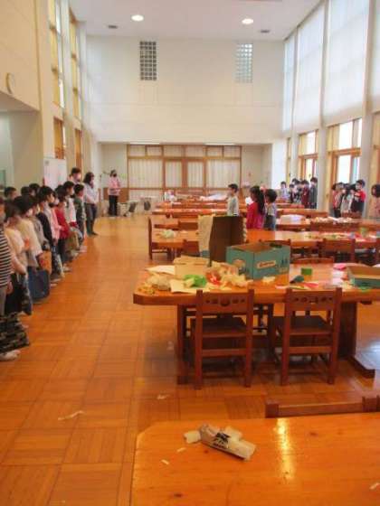 楽しかったおもちゃまつりも終わりです。1年生に「楽しんでくれましたか?」と聞くと,「はーい」と答えてもらえました。それを聞いて2年生も,にっこり。
